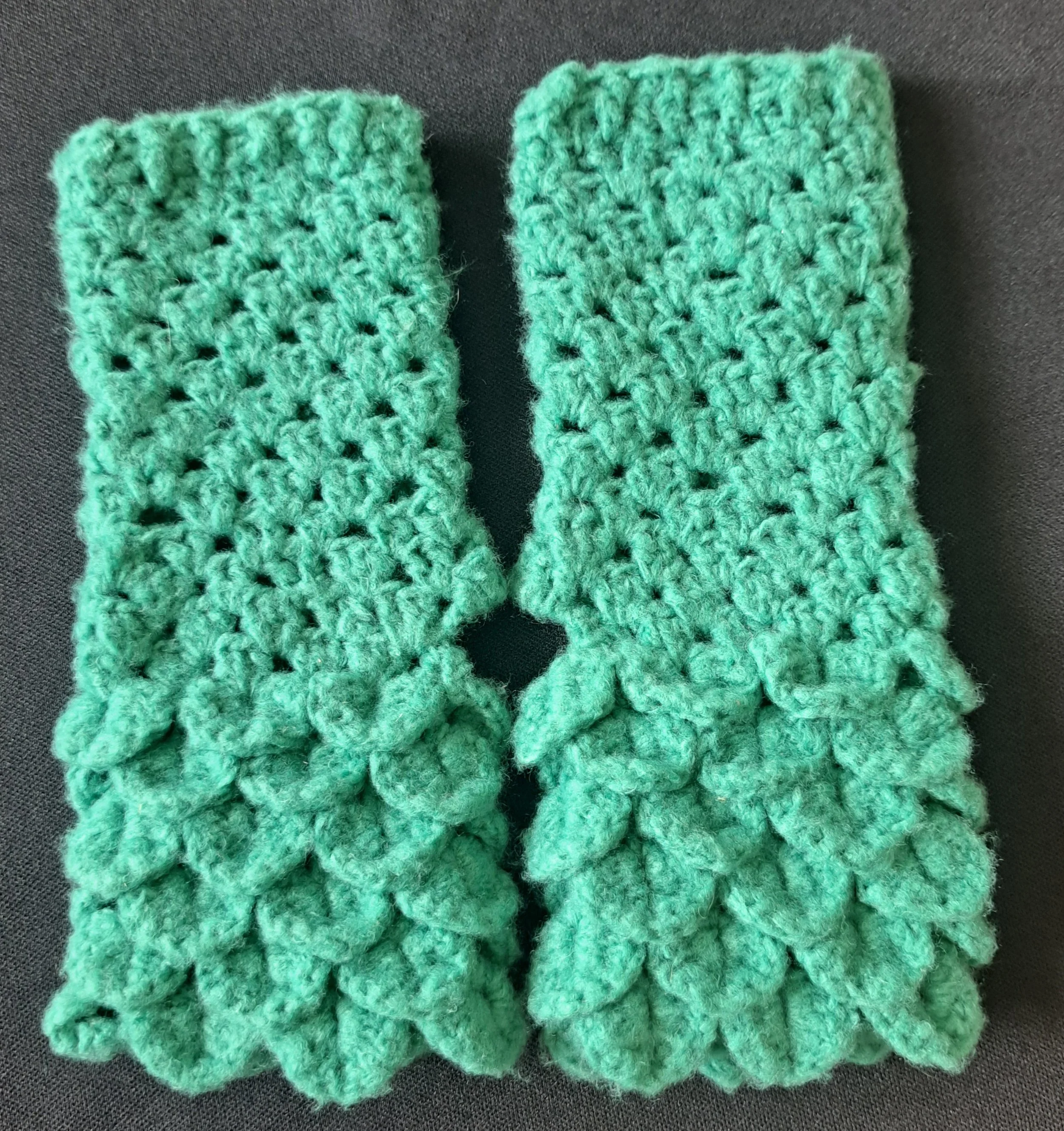 Shop › Dragon Scale Fingerless Gloves Image 1 of 1 Dragon Scale Fingerless Gloves $25.00 Size is S/MHand made dragon scale fingerless gloves. Super soft yarn, cloud cakes. Teal/green color. Add To Cart Added! Size is S/MHand made dragon scale fingerless gloves. Super soft yarn, cloud cakes. Teal/green color.